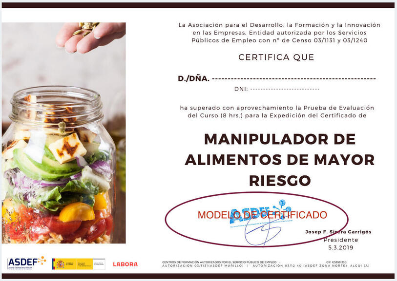 Certificado por ASDEF - Centro de Formación Homologado SEPE-LABORA nº Censo 03/1131
